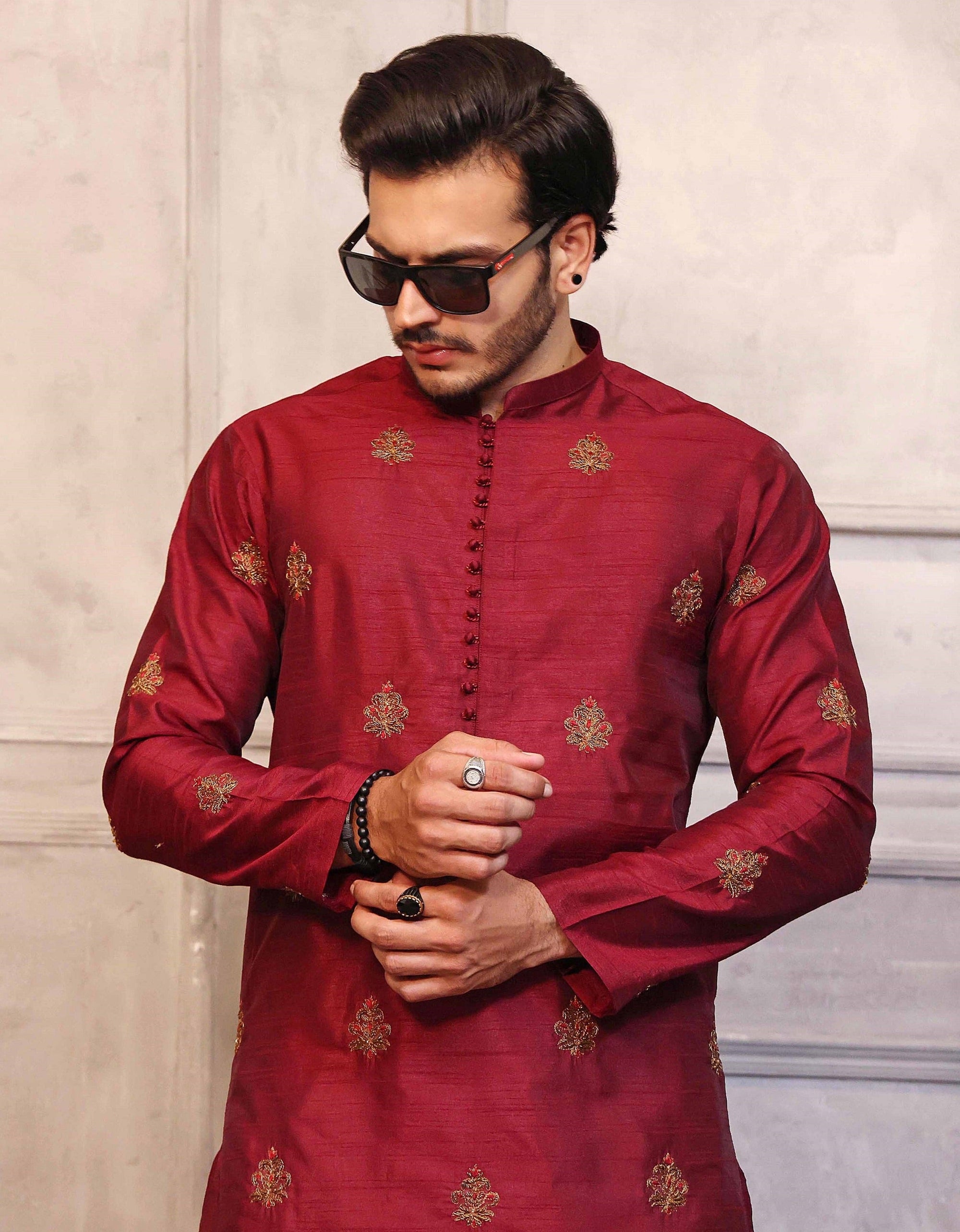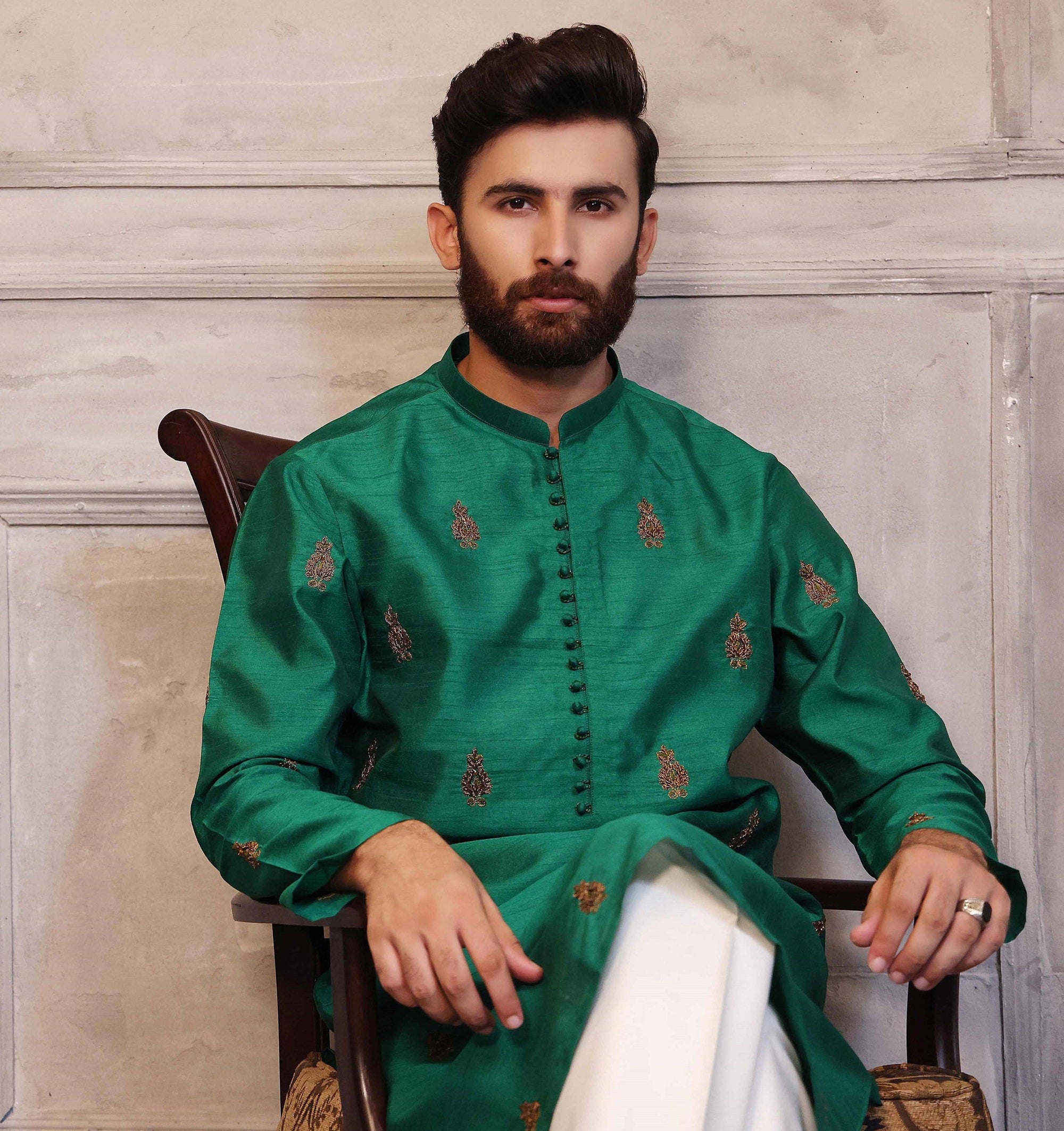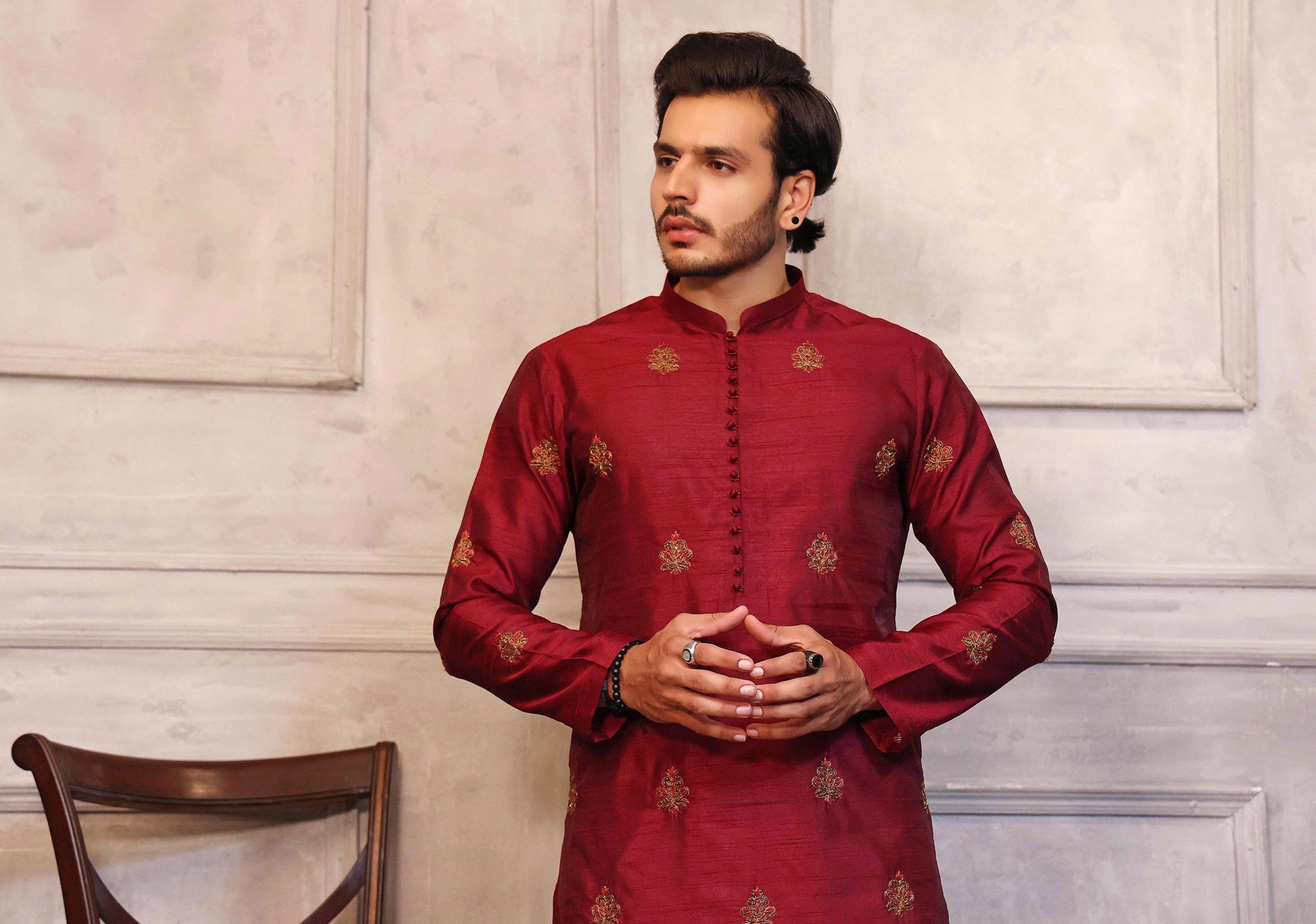 Naushemian by Nauman Arfeen ! Where the latest styles and traditions come together in Sherwani designs for grooms. Explore a wide range of men's wear options, including Prince coat, Waistcoat and Kurta Pajamas suitable for all ages